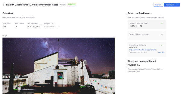 Durch den Menü-Button oben links kommst du zurück zur Übersicht. Jetzt kannst du unter Preview den Artikel begutachten.