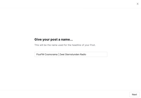 Im sich nun öffnenden Fenster gibst du deinem Artikel einen Titel und klickst auf Next.
